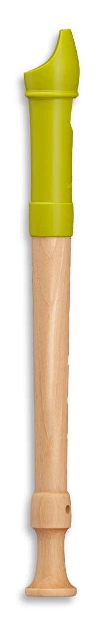 Die sympathische Sopranblockflöte mit farbigem Kopfstück aus Kunststoff in Apfelgrün und Griffstück aus natürlichem europäischen Ahornholz.